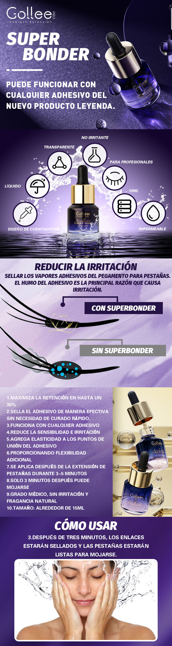 ● Fija los pegamentos al instante ● Reduce la irritación ● Aumenta la retención en un 50%