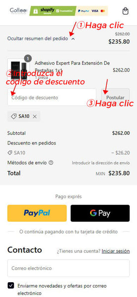 3-1. [Móvil] Haga clic en la página, pegue el código de descuento y haz clic en "Postular"