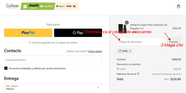 3-2. [Computadora] Pega el código de descuento y haz clic en "Postular"